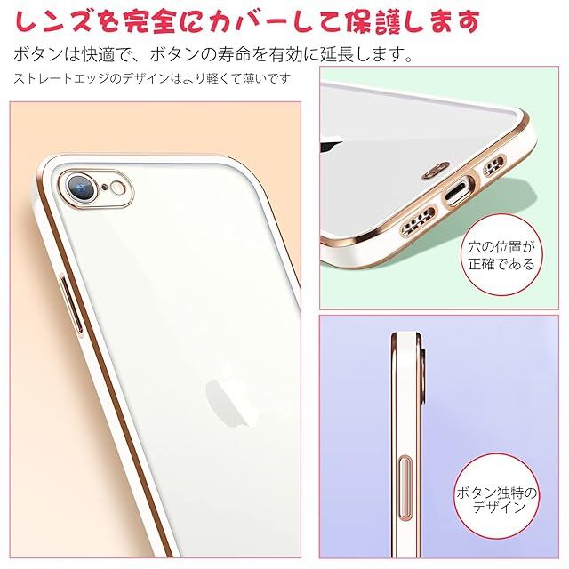 商品名:iPhone SE ケース 第3世代 第2世代 クリア iPhone8 ケース iPhone7 アイフォンSE3/SE2 カバー 透明 シリコン メッキ加工 耐衝撃 TPU 落下防止 防塵 薄型 軽量 一体型 変形防止 人気 おしゃれ 全面保護(ホワイト)