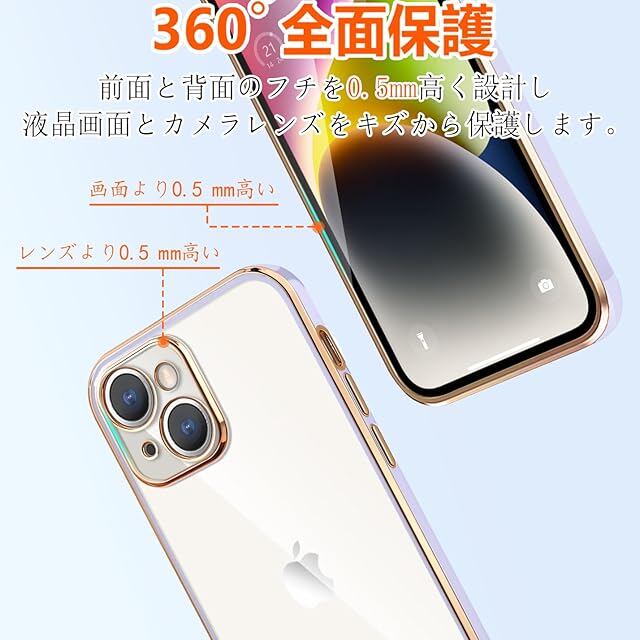 iPhone14 Plus ケース クリア アイフォン14Plus カバー シリコン メッキ加工 耐衝撃 透明 TPU 落下防止 防塵 薄型 軽量 一体型 変形防止 人気 おしゃれ 全面保護 iPhone 14Plus(クローブ紫)