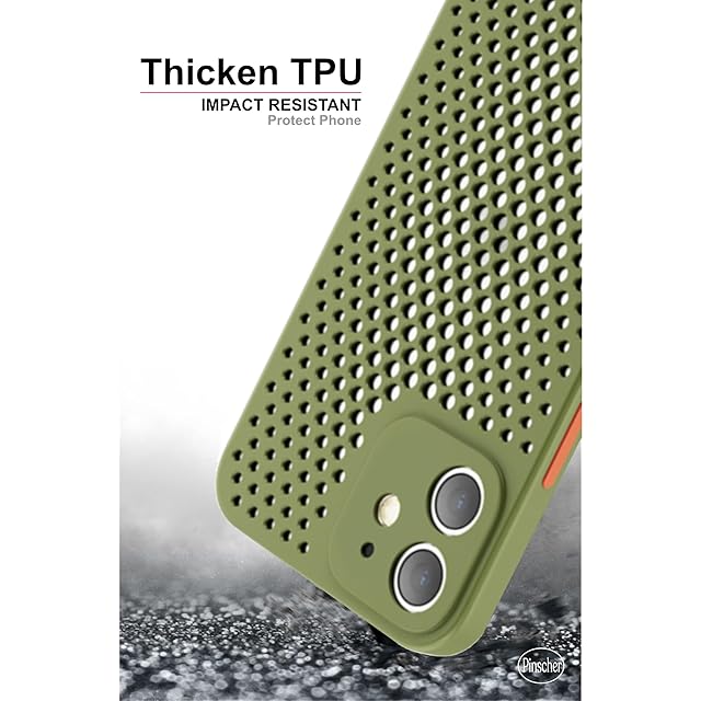 【Pinscher(ピンシャー)】 iPhone12用 (グリーン) 6.1インチ メッシュ ケース 放熱 アイフォン12用 ケース スマホケース カバー バンパー TPU Qi充電 耐衝撃 擦り傷防止 滑り止め 軽量 薄型 pc002-12-g