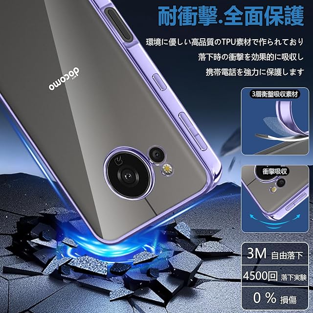 商品名:【FULEEYUHN】AQUOS Sense7 ケース クリア 軽量 薄型 黄変防止 センス7 カバー 透明 上質TPU素材 米軍MIL規格取得 SH-53C SHG10 SH-M24 対応 柔らかい手触 耐衝撃 傷防止 落下防止 携帯便利 耐久性 ストラップホール付き(パープル)