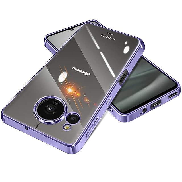 【FULEEYUHN】AQUOS Sense7 ケース クリア 軽量 薄型 黄変防止 センス7 カバー 透明 上質TPU素材 米軍MIL規格取得 SH-53C SHG10 SH-M24 対応 柔らかい手触 耐衝撃 傷防止 落下防止 携帯便利 耐久性 ストラップホール付き(パープル)