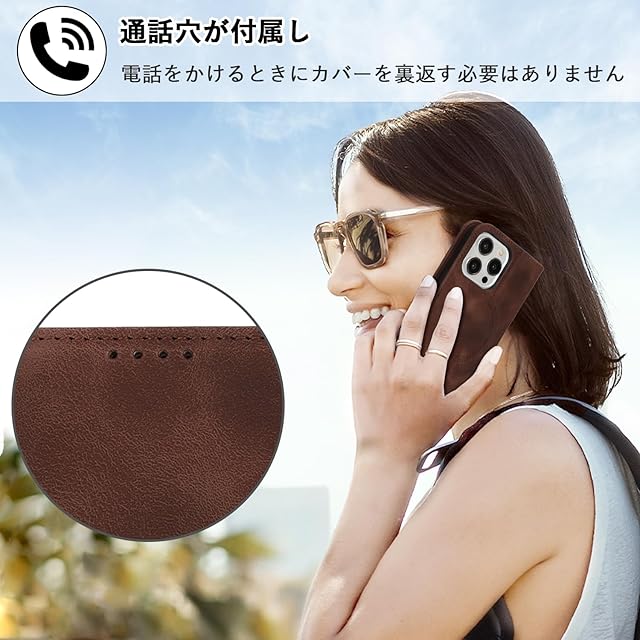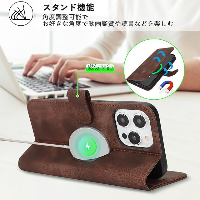 【Hamany】 対応 iPhone 15 pro max ケース Magsafe対応 アイホン15プロマックスケース 手帳型 ワイヤレス充電対応 カード収納 スタンド機能 マグネット式 耐衝撃 耐久性 耐摩擦 いphone15プロマックスケース マグネット式 レザー -スエードの質感ダークブラウン