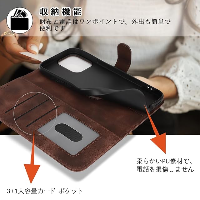 【携帯ケース対応機種】iPhone 15 Pro Max 対応機種と画面サイズをよくご確認のうえ、ご購入いただけますようお願い致します。他のモデルの革製ケースが必要な場合は、タイトルの横にある[Hamanyのストアを表示]をクリックしてください。 【Magsafe対応】Magsafe対応、ワイヤレス充電ができます。気分や状況に合わせて使い分けられてとでも便利。 【収納機能】ケース内側に実用性のカード入れポケット×3、内側ポケット×1。 【横置きスタンド機能】スタンド機能が付いて、横向て斜めに立てて、お好きな角度に調整することができ、映画や読書を楽しむ際に両手を解放され、とてもの便利さを持ちます。 【マグネット式】内蔵マグネットの手帳型ケースです。とてもシンプルな感じで、しかも持ち易いて、使い勝手がよいのです。 【高級皮革】閉じた状態での通話を可能。高品質のPUと柔軟なTPUカバーと組み合わせ、軽量で耐衝撃性に優れ、変形しにくくまた、取り外しが簡単で、スマホ本体への損傷の心配ありません。 ★ブランドの信頼性:このケースは、【Hamany】ブランドによって製造されており、携帯電話アクセサリーの分野で良好な評判と知名度を持っており、消費者により大きな信頼とを提供することができます。製品を安心してお使いいただくために、当店は【Hamany】製品に関するを提供します。製品に不具合がある場合、注文履歴画面より出品者にご連絡いただき、お問い合わせ内容に応じて、交換などの対応が可能です。