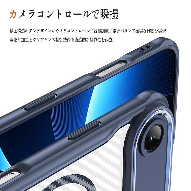 商品名:Panda Baby iPhone Air 用 ケース MagSafe対応 半透明 マット質感 指紋防止 耐衝撃バンパー マグネット搭載 レンズ全面保護 「おしゃれなカーボン調」 (ブルー)