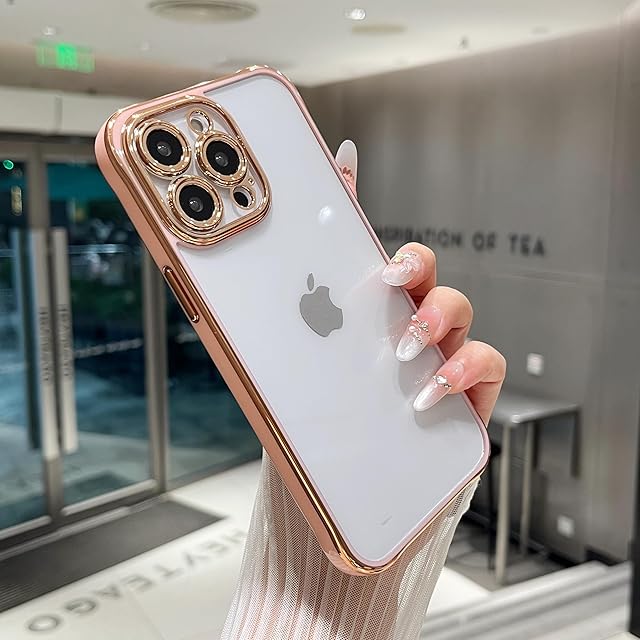 ZTOFERA for iPhone 16 Pro Max ケース、クリスタルクリアアクリルバック、ソフトメッキエッジ、取り外し可能な電話レンズ、スリム透明バンパーケース for iPhone 16 Pro Max ピンク