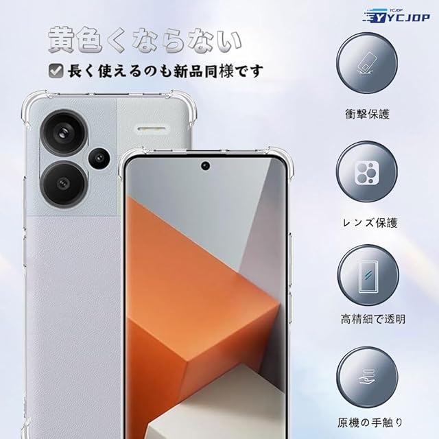 【対応機種】:Xiaomi Redmi Note 13 Pro Plus + 5G 用 保護カバー。伸縮性と耐久性に優れたTPU素材が、無臭、アンチスリップ、汗、傷に強い、ソフトとハード、取り付けが簡単でフィット感があり、スマホをより全方位的に保護することができます。