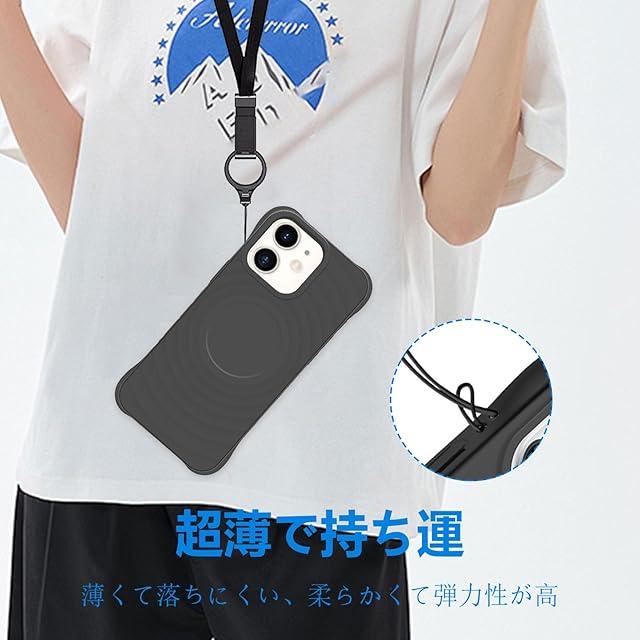 iPhone12 iPhone12Pro MagSafe対応 ケース 耐衝撃 米軍MIL規格 アイフォン12 スマホケース シリコン 保護ケース いpほね12Pro カバー ストラップホール付き 傷つけ防止 ワイヤレス充電対応 6.1インチ用(ブラック)