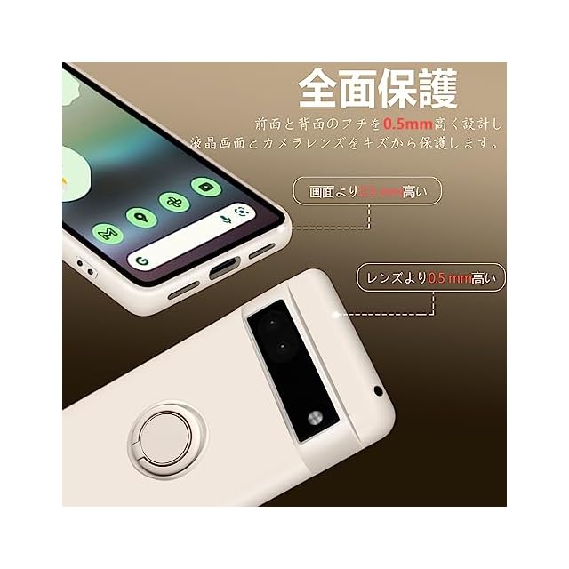商品名:Google Pixel6A ケース リング付き シリコン 耐衝撃 グーグル ピクセル 6A リング カバー 液体シリコーン スマホケース 360°回転 スタンド機能 車載ホルダー ストラップホール付き 滑り止め 落下防止(オフホワイト)