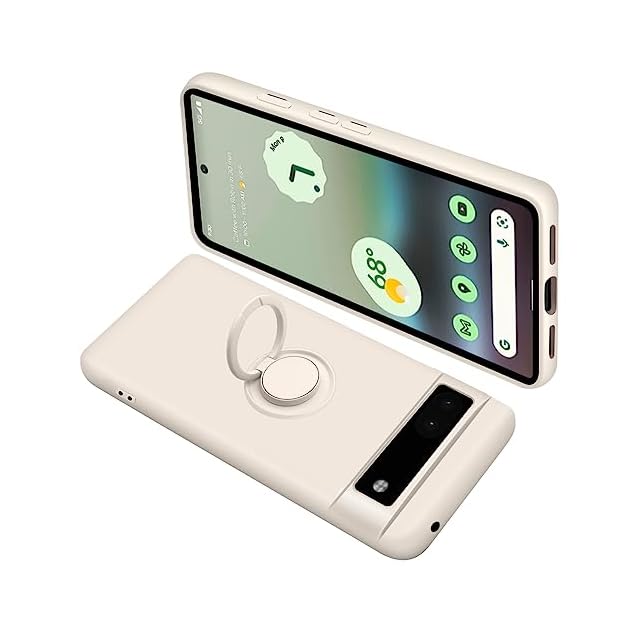 Google Pixel6A ケース リング付き シリコン 耐衝撃 グーグル ピクセル 6A リング カバー 液体シリコーン スマホケース 360°回転 スタンド機能 車載ホルダー ストラップホール付き 滑り止め 落下防止(オフホワイト)