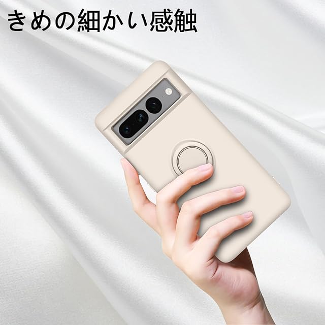 Google Pixel7Pro ケース リング付き シリコン 耐衝撃 グーグル ピクセル 7Pro リング カバー 液体シリコーン スマホケース 360°回転 スタンド機能 車載ホルダー ストラップホール付き 滑り止め 落下防止(オフホワイト)