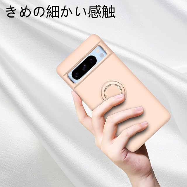 商品名:Google Pixel8Pro ケース リング付き シリコン 耐衝撃 グーグル ピクセル 8Pro リング カバー 液体シリコーン スマホケース 360°回転 スタンド機能 車載ホルダー ストラップホール付き 滑り止め 落下防止(ピンク)