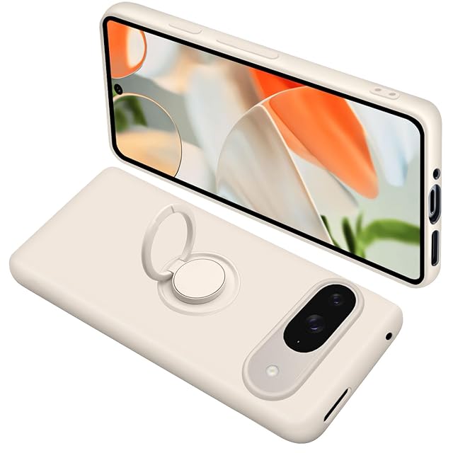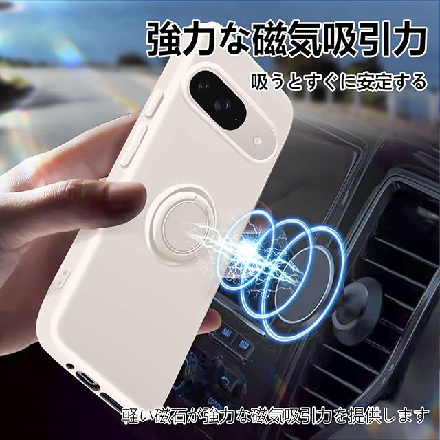 商品名:Google Pixel9 ケース Pixel9Pro カバー リング付き シリコン 耐衝撃 グーグル ピクセル 9 リング カバー 液体シリコーン スマホケース 360°回転 スタンド機能 車載ホルダー ストラップホール付き 滑り止め 落下防止(オフホワイト)