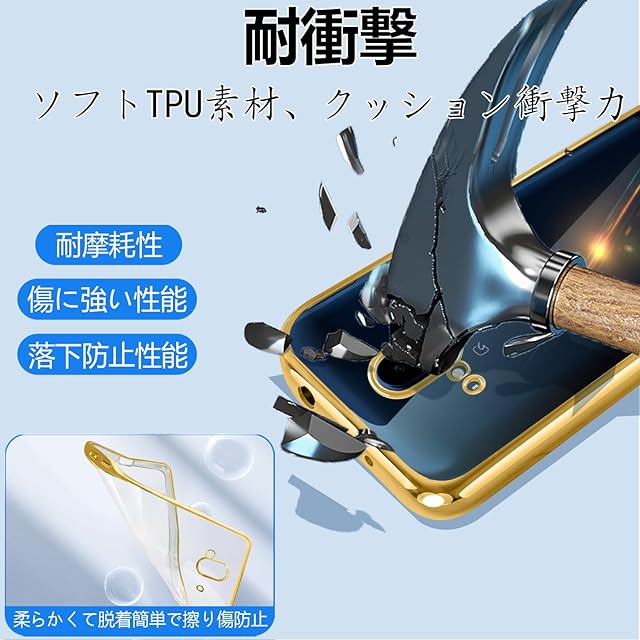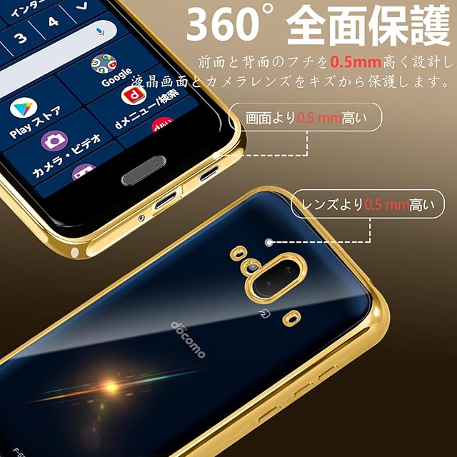 Arrows F-52B ケース クリア カバー 透明 スマホケース 耐衝撃 軽量 メッキ加工 TPU 薄型 ストラップホール付き 滑り止め 落下防止(ゴールド)