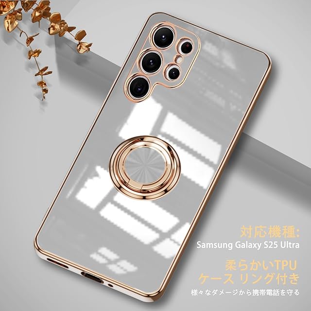 商品名:LuFiYa スマホケース Samsung Galaxy S25 Ultra 用 ケース リング付き カバー TPU素材 スタンド機能 スマホケース 軽量 耐衝撃 薄い 擦り傷防止 落下防止 車載ホルダー 360°回転 ケース Samsung Galaxy S25 Ultra 用 (ホワイト)