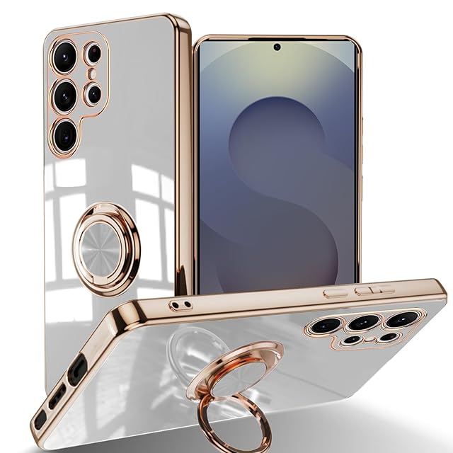 LuFiYa スマホケース Samsung Galaxy S25 Ultra 用 ケース リング付き カバー TPU素材 スタンド機能 スマホケース 軽量 耐衝撃 薄い 擦り傷防止 落下防止 車載ホルダー 360°回転 ケース Samsung Galaxy S25 Ultra 用 (ホワイト)