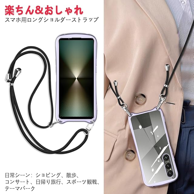商品名:Xperia 1 VI 用の ケース ショルダー クリア xperia1vi SO-51E SOG13 カバー スマホケース 耐衝撃 肩掛け 首掛け 斜めかけケース 可愛い かわいい 韓国 透明 TPU 長さ調整可能 取り外し可能(ライトパープル)