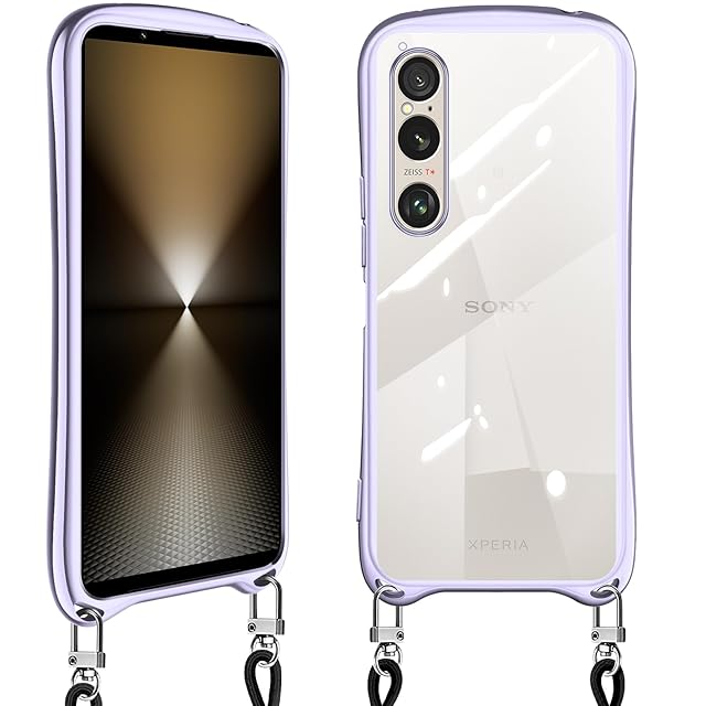 Xperia 1 VI 用の ケース ショルダー クリア xperia1vi SO-51E SOG13 カバー スマホケース 耐衝撃 肩掛け 首掛け 斜めかけケース 可愛い かわいい 韓国 透明 TPU 長さ調整可能 取り外し可能(ライトパープル)