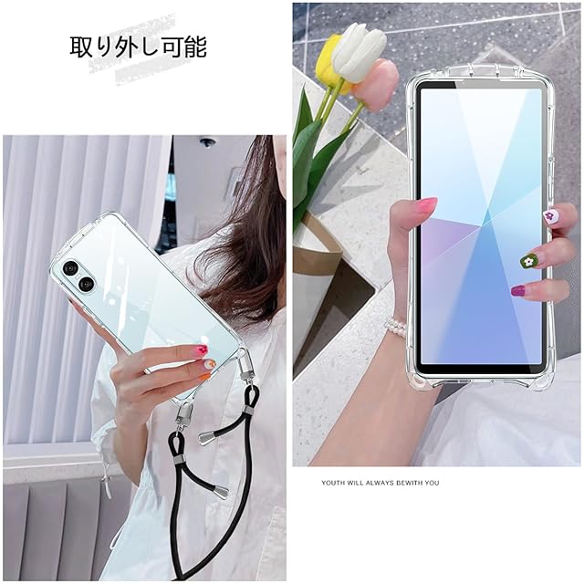 Xperia 10 VI 用の ケース クリア ショルダー xperia10vi SO-52E SOG14 スマホケース カバー 耐衝撃 全透明 TPU 肩掛け 首掛け 斜めかけケース 可愛い かわいい 韓国 長さ調整可能 取り外し可能(クリア)