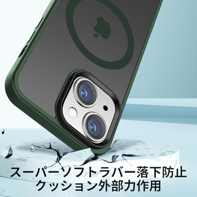 商品名:【米軍規格・MagSafe対応】Gtsoho iPhone14 ケース iPhone13用 ケース 半透明 マグネット搭載 ワイヤレス充電 耐衝撃 耐久性 全面保護 黄ばみなし ストラップホール付き イフォン13 / 14用 カバー マグセーフ対応 ミッドナイトグリーン