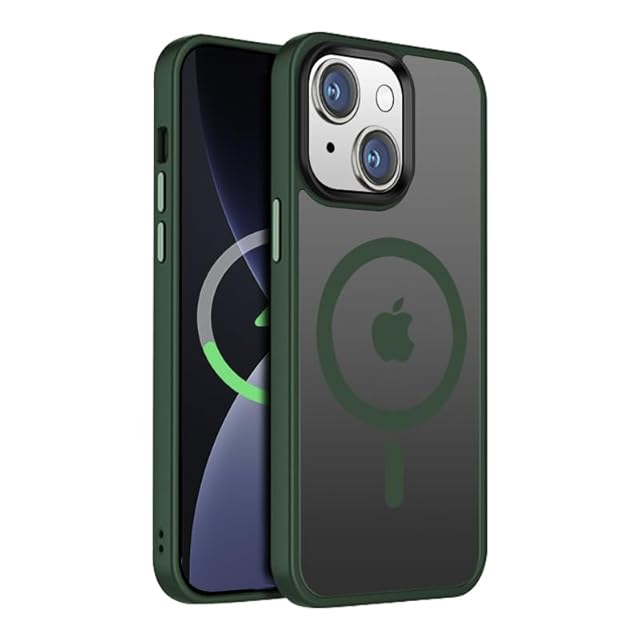 【米軍規格・MagSafe対応】Gtsoho iPhone14 ケース iPhone13用 ケース 半透明 マグネット搭載 ワイヤレス充電 耐衝撃 耐久性 全面保護 黄ばみなし ストラップホール付き イフォン13 / 14用 カバー マグセーフ対応 ミッドナイトグリーン