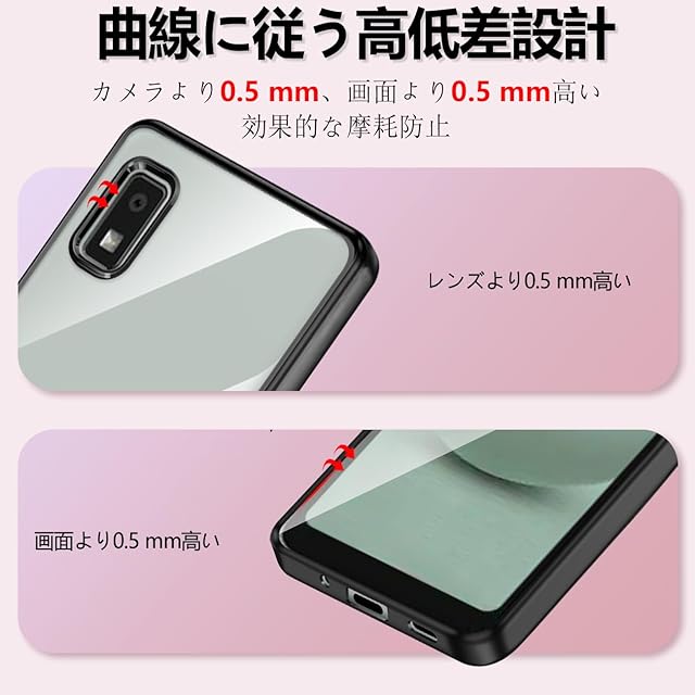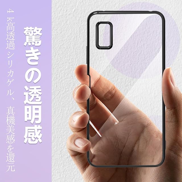 AQUOS wish3 ケース クリア 衝撃吸収 TPU SH-53D スリム 米軍MIL規格取得 wish3 スマホケース 黄変なし ストラップホール付 (ブラック)