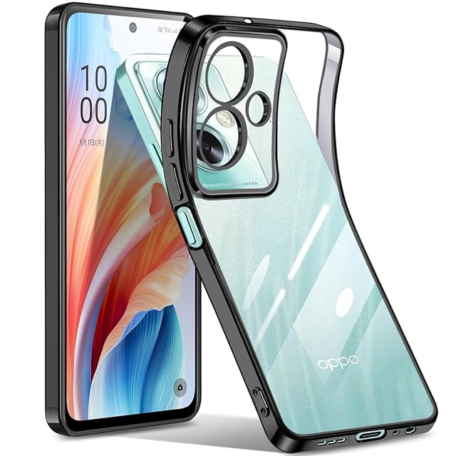 商品名:OPPO A79 5G ケース クリア 耐衝撃 軽量 スマホケース 超薄型 TPU ストラップホール付き メッキ加工 透明 ソフト 衝撃吸収 (ブラック)