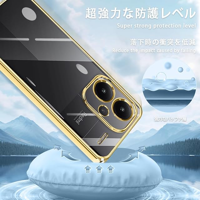 【透明感&メッキ加工】透明的な背面がRedmi Note 13 Pro+ 5Gの本来の美しさを引き出し、メッキ加工されたフレームはさらにスタイリッシュな印象を与えます。背面がクリアなので好きなシールや写真を入れてカスタマイズOK。