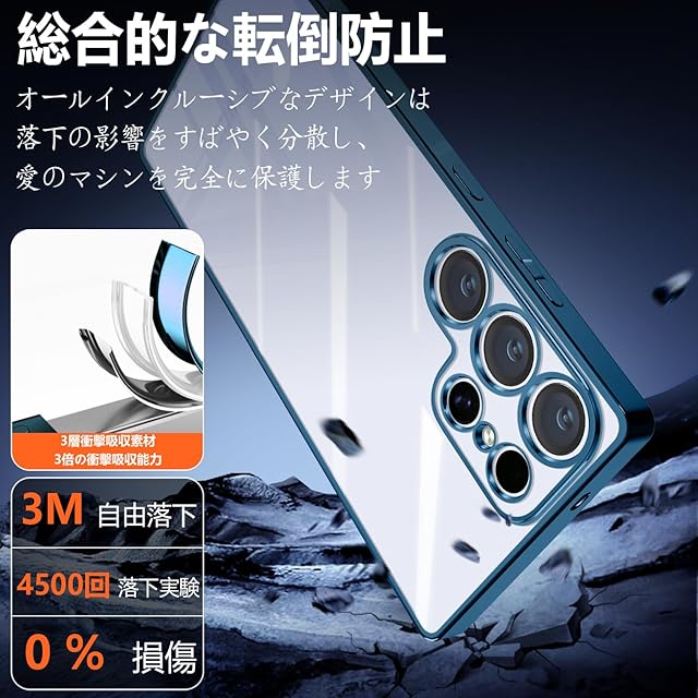 商品名:Samsung Galaxy S25 ultra ケース クリア SC-52F SCG32 スマホケース 耐衝撃 薄型 米軍MIL規格 tpu ギャラクシー S25ultra カバー 防塵 指紋防止 一体型 人気 傷·落下防止(ブルー)