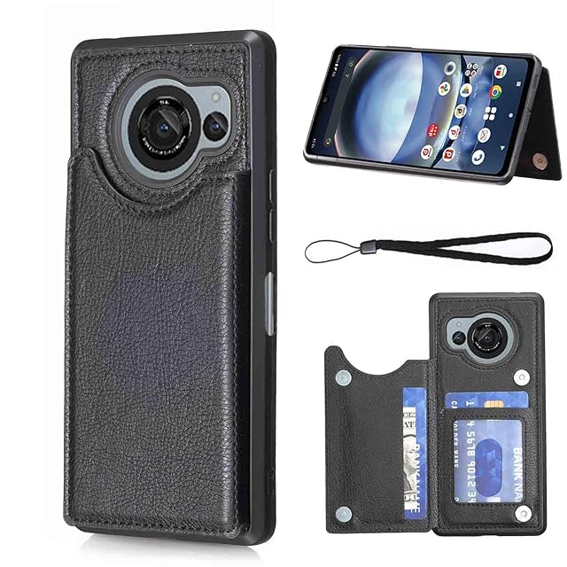 【Aqier】For AQUOS R8/docomo SH-52D ケース 背面手帳型 軽い薄い 純色 レザーケース(ブラック)ドコモsh52d アクオス アールエイト アクオスr8 ケースカード入れ 片手操作 バックカバー シャープr8 黒