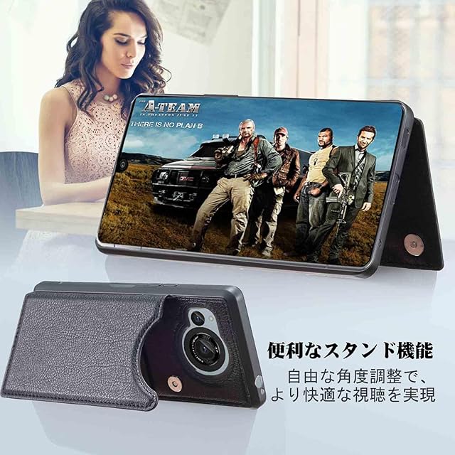 商品名:【Aqier】For AQUOS R8/docomo SH-52D ケース 背面手帳型 軽い薄い 純色 レザーケース(ブラック)ドコモsh52d アクオス アールエイト アクオスr8 ケースカード入れ 片手操作 バックカバー シャープr8 黒
