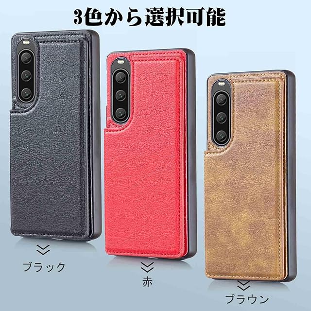 商品名:【Aqier】For Xperia 1 V/SO-51D/SOG10/A301SO/XQ-DQ44 ケース 背面手帳型 軽い薄い 純色 レザーケース(レッド)ソニー エクスペリア1v ドコモso51d エクスペリア1 5 ケースカード入れ 片手操作 バックカバー ソニーxperia1v 赤色