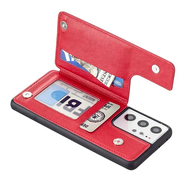 【Aqier】For Galaxy S21 ultra/docomo SC-52B/au SCG11 ケース 背面手帳型 軽い薄い 純色 レザーケース(レッド)ギャラクシー エス21 ウルトラ ドコモsc52b ケースカード入れ 片手操作 バックカバー サムスンs21u 赤色