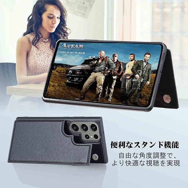 商品名:【Aqier】For Galaxy S24 Ultra/docomo SC-52E / au SCG26 ケース 背面手帳型 軽い薄い 純色 レザーケース(ブラック)サムスンscg26 ギャラクシー S24ウルトラ ドコモsc52e ケースカード入れ 片手操作 バックカバー サムスンS24u 黒