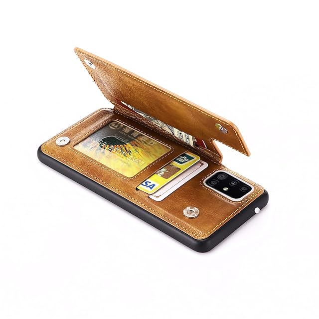 【Aqier】For Galaxy A51 5G/docomo SC-54A/au SCG07 ケース 背面手帳型 軽い薄い 純色 レザーケース(レトロブラウン)ギャラクシーa51 ドコモsc54a ケースカード入れ 片手操作 バックカバー サムスンa51 薄い茶