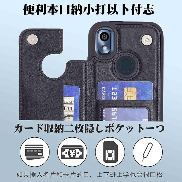 【Aqier】For docomo あんしんスマホ KY-51B ケース 背面手帳型 軽い薄い 純色 レザーケース(ブラック)あんしんスマホ ドコモky51b ケースカード入れ 片手操作 バックカバー 京セラky51b 黒