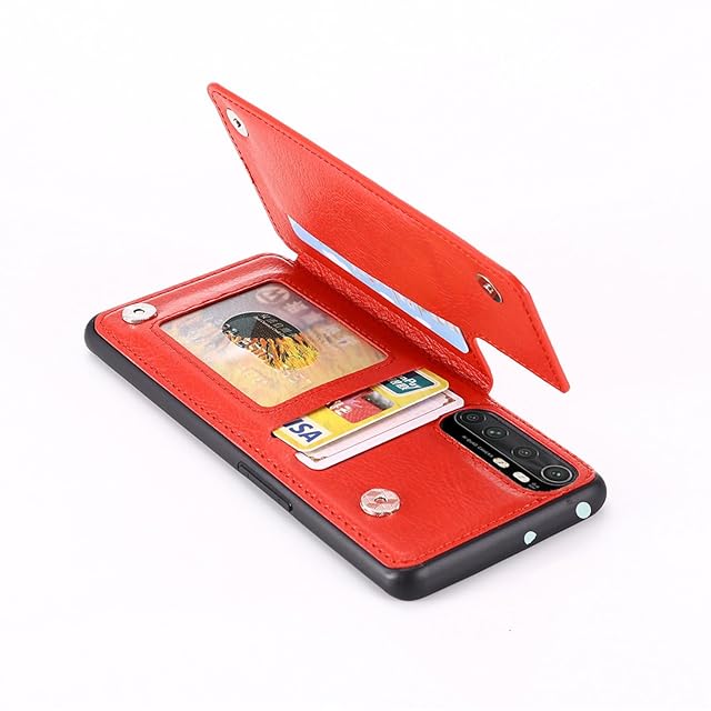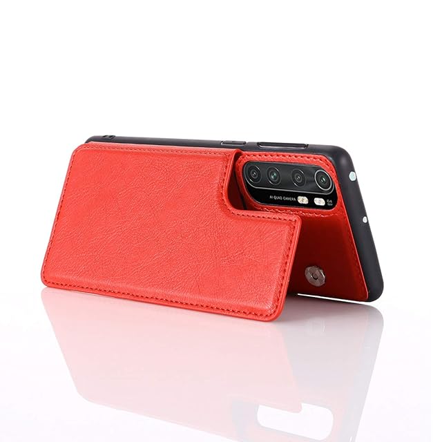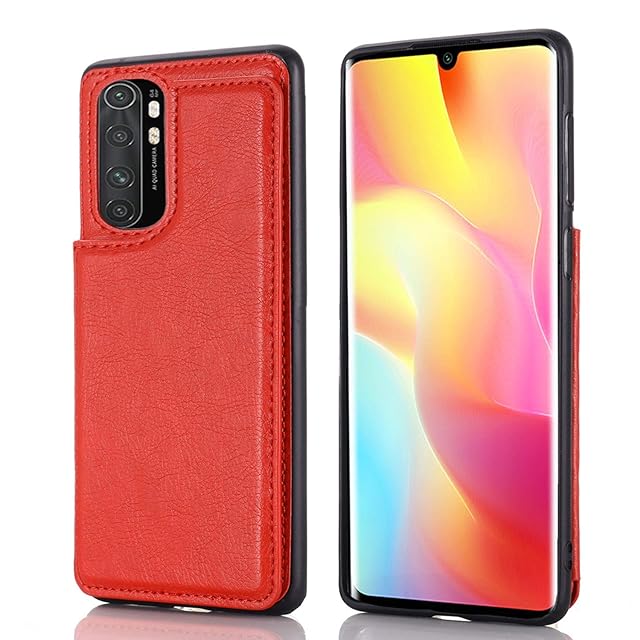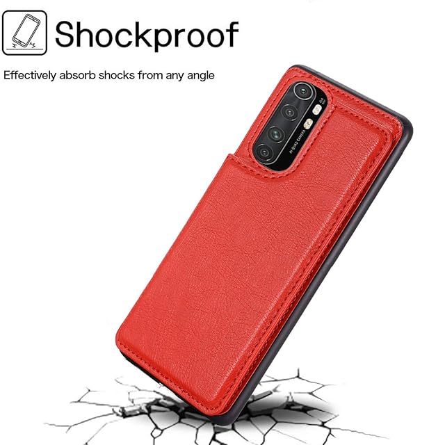 商品名:【Aqier】Mi Note10 Lite 背面手帳型 軽い薄い 純色 レザーケース(レッド)ミー ノート10ライト カード入れ 片手操作 バックカバー シャオミNote10Lite 赤色