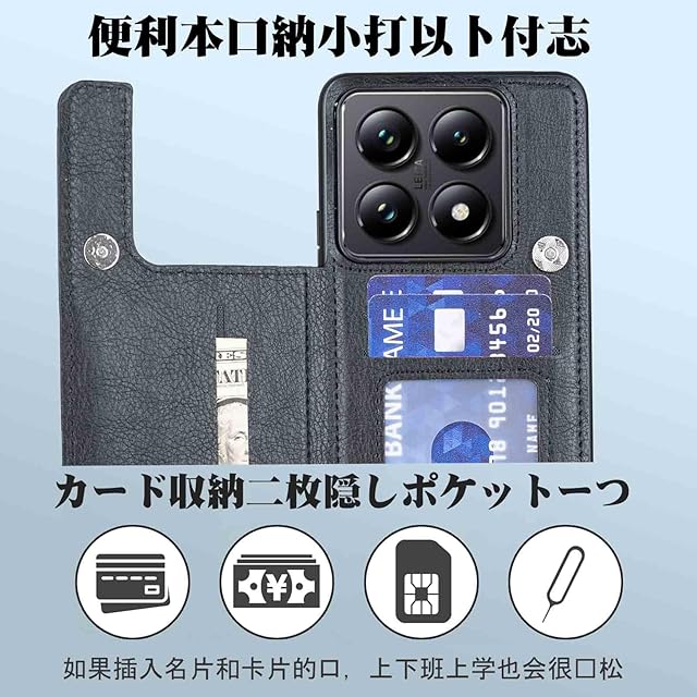 商品名:【Aqier】For XIAOMI Mi 14T PRO A402XM 用 ケース 背面手帳型 軽い薄い 純色 レザーケース(ブラック)シャオミ ミー14Tプロ ケースカード入れ 片手操作 バックカバー シャオミmi14tpro 黒
