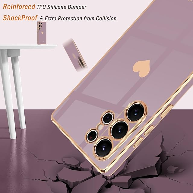 商品名:Teageo 適用 Samsung Galaxy S25 Ultra ケース対応 少女の 可愛い 愛心の形 メッキ加工保護ケース 薄型 TPU ワイヤレス充電対応 傷に強い 耐衝撃 落下防止 電話カバー Samsung Galaxy S25 Ultra 用 スマホケース(さくらパープル)