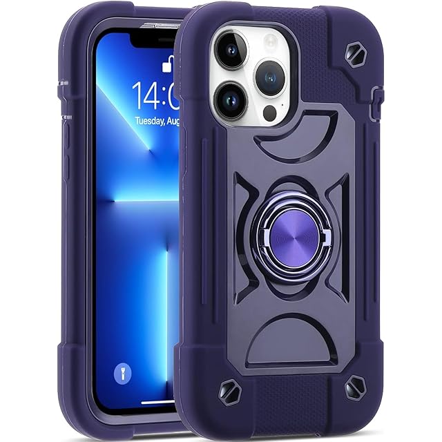 iPhone 14 / iPhone 13 用 ケース 耐衝撃 頑丈 360度回転スタンド リング付き付き 虹色 かわいい アイフォン14 ケース 車載ホルダー対応 落下防止 ストラップホール付き アウトドア 子供 仕事用 あいふぉん 13 アイフォン 14 (6.1インチ) 対応 (iPhone 14 / iPhone 13, 紫)