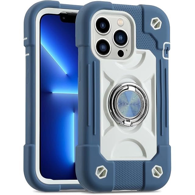 商品名:iPhone 15 Plus ケース 耐衝撃 頑丈 360度回転スタンド リング付き付き 虹色 かわいい アイフォン15 Plus ケース 車載ホルダー対応 落下防止 ストラップホール付き アウトドア 子供 仕事用 (霧ブルー)