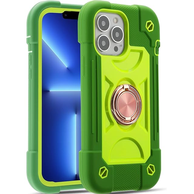 商品名:iPhone 15 Pro ケース 耐衝撃 頑丈 360度回転スタンド リング付き付き 虹色 かわいい アイフォン15 プロ ケース 車載ホルダー対応 落下防止 ストラップホール付き アウトドア 子供 仕事用 (翡翠緑)