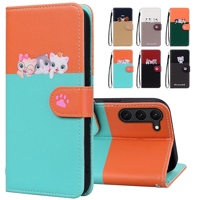 Galaxy S23 FE ケース 手帳型 ギャラクシーs23 fe ケース 手帳型 携帯ケース ギャラクシーs23 fe 5g Galaxy S23 FE 5G ケース S23fe カバー カード収納 スマホケース 人気 可愛い 猫 携帯電話ホルダー 磁気バックル クッション性と衝撃吸収性 SCG24 ケース手帳型 Galaxy S23 FE スマホケース[ブルー+オレンジ], ブルーオレンジ