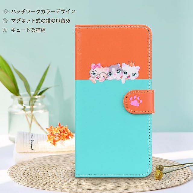 商品名:Galaxy S23 FE ケース 手帳型 ギャラクシーs23 fe ケース 手帳型 携帯ケース ギャラクシーs23 fe 5g Galaxy S23 FE 5G ケース S23fe カバー カード収納 スマホケース 人気 可愛い 猫 携帯電話ホルダー 磁気バックル クッション性と衝撃吸収性 SCG24 ケース手帳型 Galaxy S23 FE スマホケース[ブルー+オレンジ], ブルーオレンジ