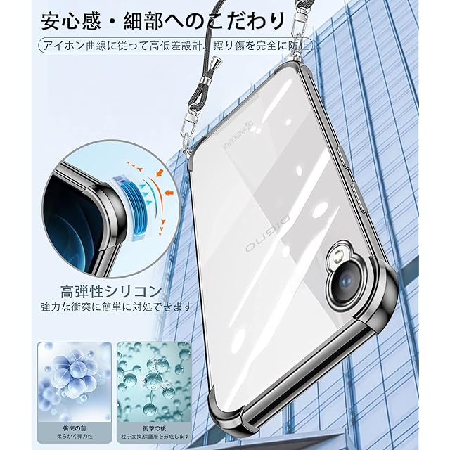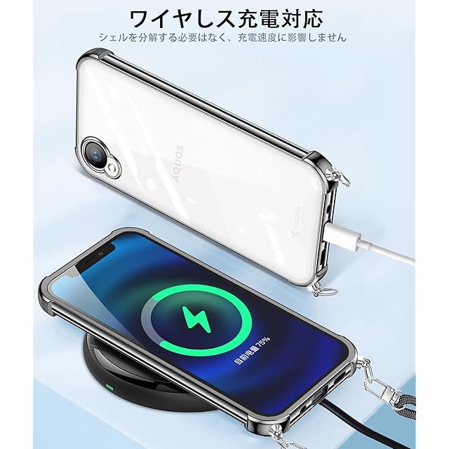商品名:DIGNO BX2 ケース クリア ショルダー 耐衝撃 digno bx2 スマホケース A101KC カバー 薄型 bx2 対応ケース TPU 軽量 肩がけ 首掛け 紐付きバンパー カバー ストラップ付き ストラップホール付き 透明 着脱可 調節 Qi充電 ワイヤレス充電 傷防止 (ブラック)