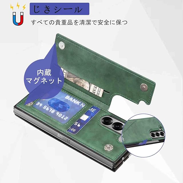 商品名:【Aqier】カバー 用 Galaxy Z Fold6 SCG28 SC-55E 專用 ケースカード (ダルグリーン)ギャラクシーzフォールド6 スマホケース 背面カード 収納 軽量 多機能 ケース 手帳型 zfold6 GREEN