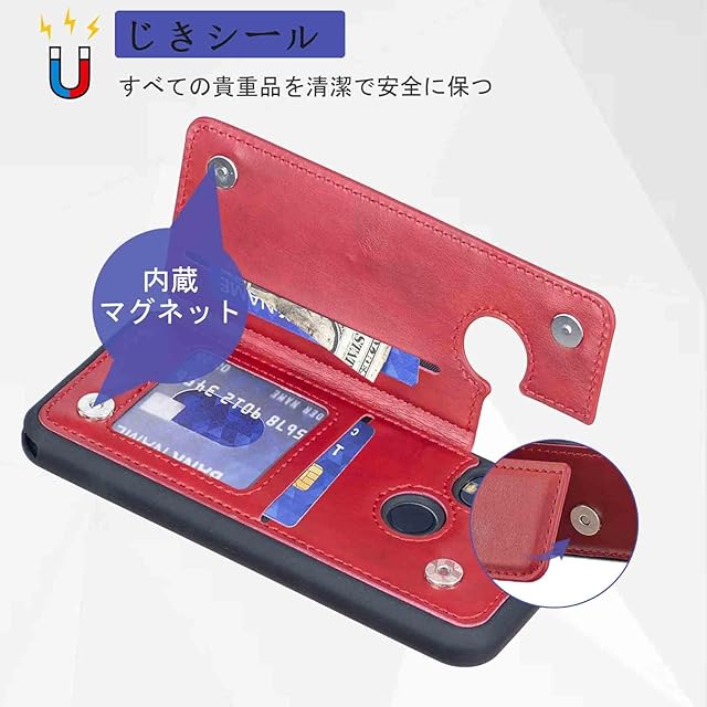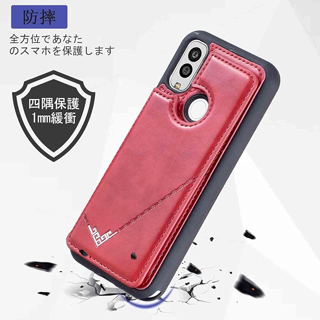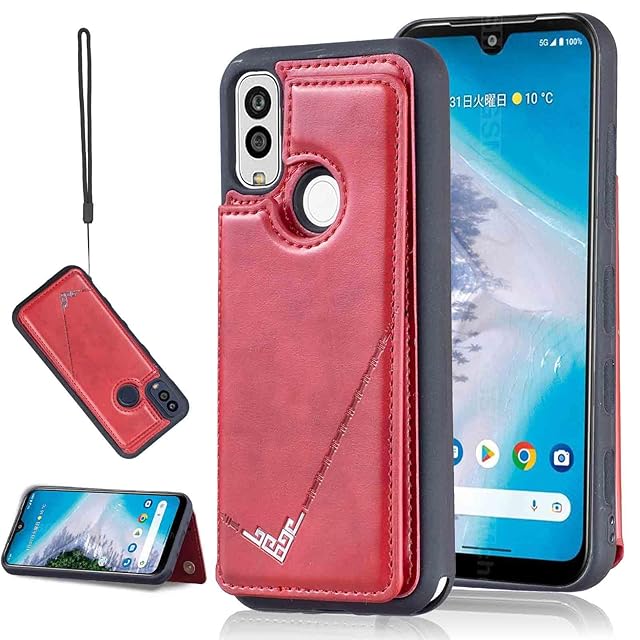 商品名:【Aqier】カバー 用 Android One S9/S10 / DIGNO SANGA edition KC-304 ケースカード (レッド) アンドロイド ワンs9/s10 ディグノsanga kc304 スマホケース 背面カード 収納 軽量 多機能 ケース 手帳型 京セラones10 RED