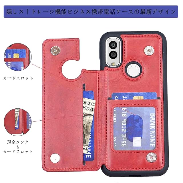 【Aqier】カバー 用 Android One S9/S10 / DIGNO SANGA edition KC-304 ケースカード (レッド) アンドロイド ワンs9/s10 ディグノsanga kc304 スマホケース 背面カード 収納 軽量 多機能 ケース 手帳型 京セラones10 RED
