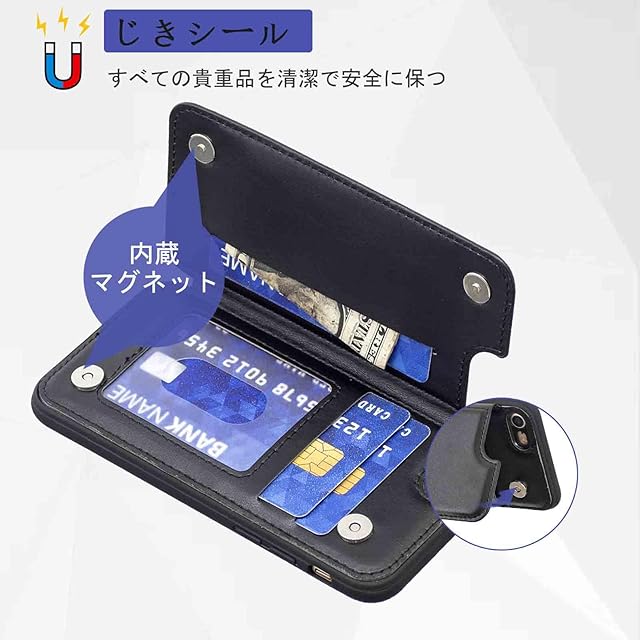 商品名:【Aqier】カバー 用 iPhone SE (2020) / SE2 (第2世代) / iphone8 / iphone7 ケースカード (ブラック)アップル アイフォse/se2/8/7 スマホケース 背面カード 収納 軽量 多機能 ケース 手帳型 iphone7g BLACK
