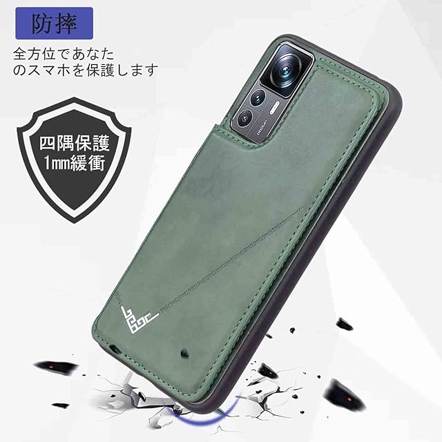 商品名:【Aqier】カバー 用 Mi 12T Pro SoftBank/イオンモバイル/OCN モバイル ONE/mineo ケースカード (ダルグリーン) シャオミ ミー12tプロ ミー12tpro スマホケース 背面カード 収納 軽量 多機能 ケース 手帳型 mi12tpro GREEN
