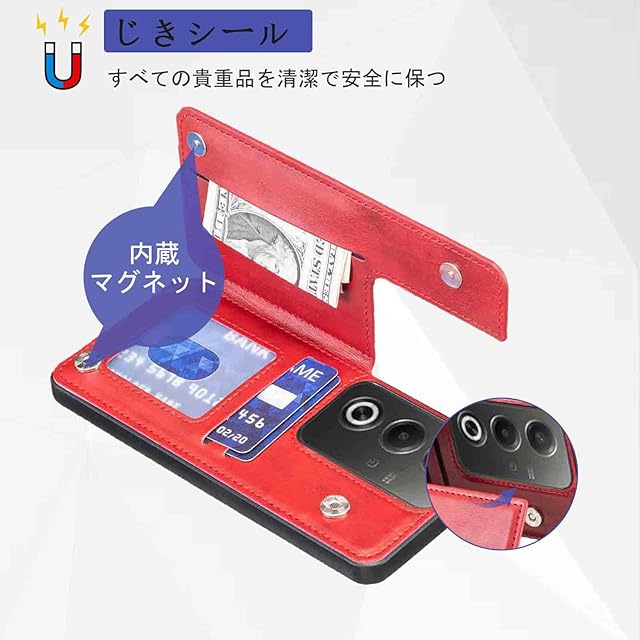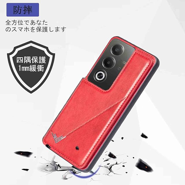【Aqier】OPPO A3 Pro 5G/A402OP/CPH2639 用 スマホケース(レッド)オッポa3プロ 背面カード 収納ケース オッポa3Pro RED